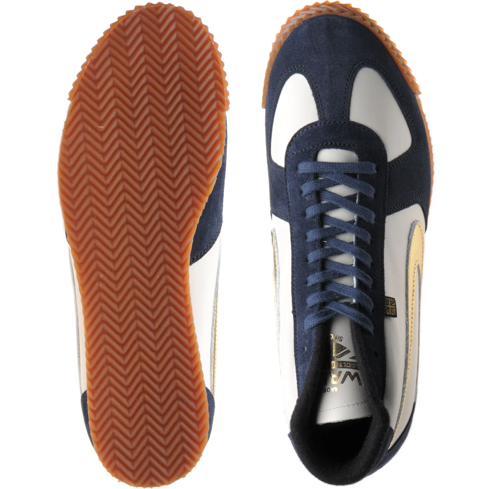 Herring Tokyo Hi-Top Trainer mens rubber-soled boots in white calf and navy suede